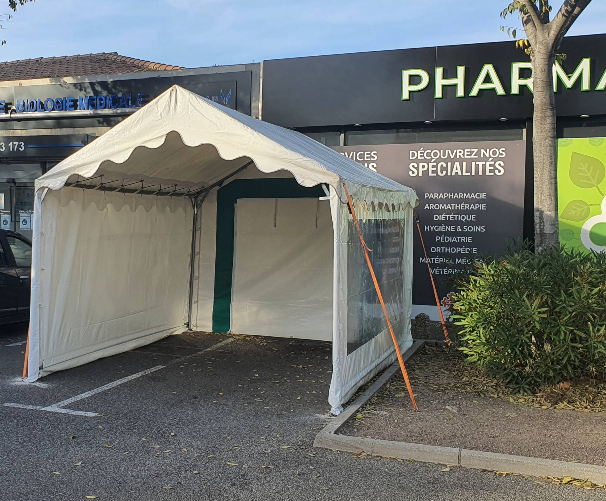Ces modules sont de largeur 3 m et répondent à des usages multiples : stands, allées couvertes, etc…Les jonctions entre les tentes sont assurées par des gouttières latérales ou de fronton pour l’étanchéité en option.Toit : tissu polyester 650 g/m2, enduit blanc PVC 1 000 deniers classé M2, antisalissure verni sur les 2 faces.Armature renforcée en tube acier de ø 40 x 2 mm sans visserie et tous les angles égaux.Livrée avec haubans et piquets (1 par pied).Il sera nécessaire de choisir en option 2 pignons, 2 rideaux et 1 jeu de barres de tensions si vous souhaitez que la tente soit fermée sur le pourtour.Dimension :Hauteur centrale : 2,87 m Hauteur des rideaux : 2,00 mNombre de fermes : 2Poids : 86 kgprofessionnel de santé evp location vous propose de louer cette tente pour réaliser des tests covid