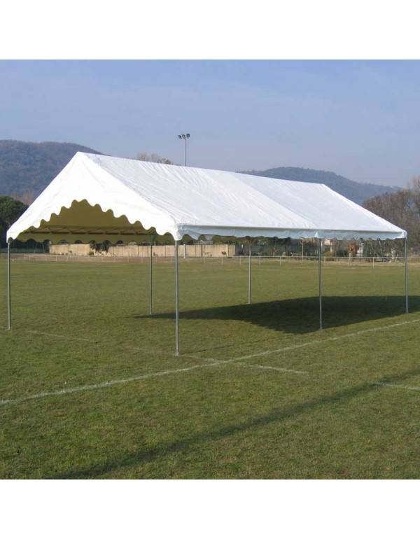 Ces Tente sont de largeur 5 m. En juxtaposant dans les deux sens les modules Plein Air largeur 5 m,nous arrivons à obtenir de grandes surfaces couvertes (réception, stockage,…).Les jonctions entre les tentes sont effectuées par des gouttières latérales ou de fronton en option.Entoilage polyester enduit PVC blanc, 650g/m² classé M2, antisalissure, vernis sur les 2 faces.La Plein Air peut être montée pour une courte période grâce à son montage manuel très facile qui ne nécessite aucun appareil de levage.Armature renforcée en tube acier galvanisé Ø 40 mm x 2 mm, sans visserie et tous les angles égaux. Dimensions :Hauteur centrale : 3,30 m Hauteur des rideaux : 2,00 mNombre de fermes : 3Poids : 203 kg