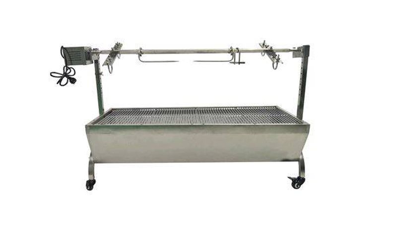 Combine grilladeMoteur 220vbroche pour un agneau de 30 kg maxdimension H. 83 x L. 160 x P. 46 cm. Poids : 26 kg. Inox.Foyer sur roulettesFonctionne au charbon de bois